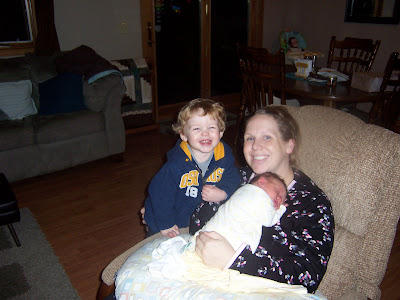 Brady is adjusting, finally. I am getting my good little boy back! He has been so helpful lately! :) 3 weeks it seems. Still not perfect, but we're getting there. We seem to have fallen into a routine at home that is working too, so I have to say that we are all adjusting quite well. Parker esp. adjusted to life outside the womb very well.